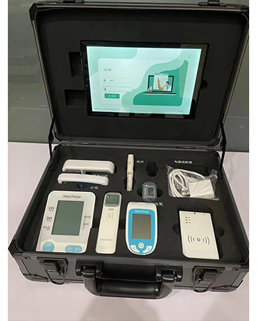 3.功能集成:系統(tǒng)具備測(cè)量、管理所有集成設(shè)備的功能,一體機(jī)集成心電圖、心率、血糖、血壓、血氧飽和度、尿常規(guī)、體溫等監(jiān)測(cè)功能,其余檢測(cè)設(shè)備采用有線或籃牙連接,保證數(shù)據(jù)傳輸穩(wěn)定